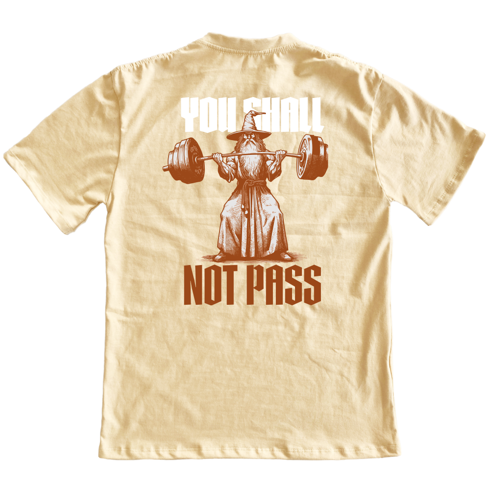 A camiseta oversized "You Shall Not Pass" da Nordk combina estilo despojado com uma mensagem icônica do universo geek. A estampa exclusiva traz o lendário Gandalf, agora levantando pesos, em uma cena que mistura fantasia com o mundo fitness, perfeita para quem é fã de cultura pop e treinos intensos.