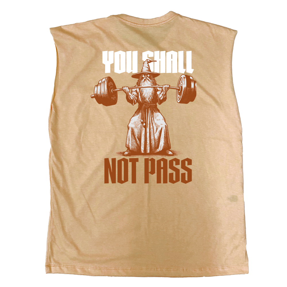 A camiseta oversized "You Shall Not Pass" da Nordk combina estilo despojado com uma mensagem icônica do universo geek. A estampa exclusiva traz o lendário Gandalf, agora levantando pesos, em uma cena que mistura fantasia com o mundo fitness, perfeita para quem é fã de cultura pop e treinos intensos.